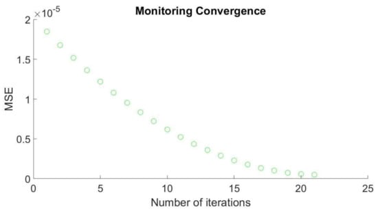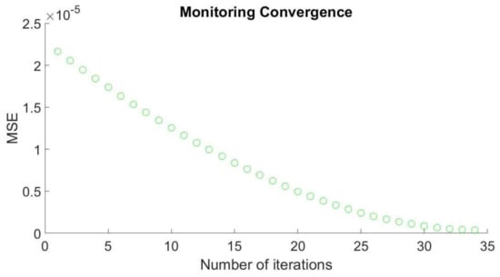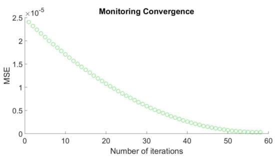 Next, for the optimization using the GD method, the first-partial derivative of the with respect to is required. The partial derivative of the loss function is defined in the equation below. The derivation of Equation (7) is provided in Appendix B (in Equation (A1)):