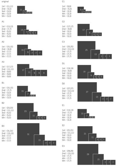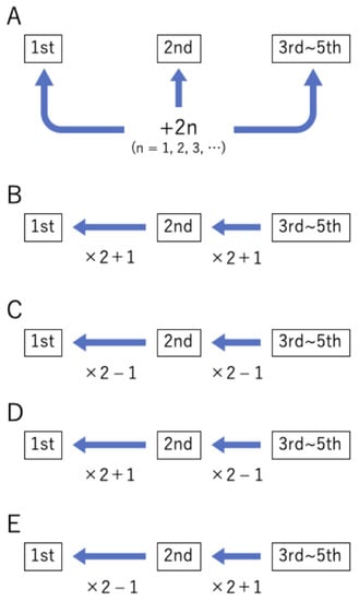 Change patterns of the filter size of the convolution layer. [(A–E): the change patterns of group name (groups A to E)].