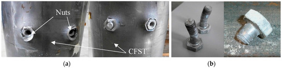 - Wang, Y.; Wang, Z.; Pan, J.; Wang, P. Seismic Behavior of a Novel Blind Bolted Flush End-Plate Connection to Strengthened Concrete-Filled Steel Tube Columns. Appl. Sci. 2020, 10, 2517. [Google Scholar] [CrossRef]