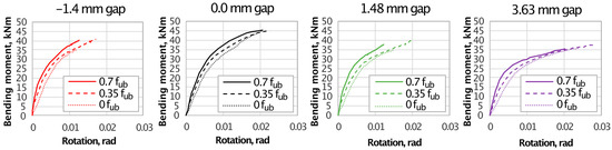 A further sensitivity study, which was based on Wang and Zhang’s [13] observation that the increase in preloading force can increase the moment resistance of curved endplated connection, not only confirmed it, but also demonstrated that imperfections can augment this phenomenon (Figure 10).