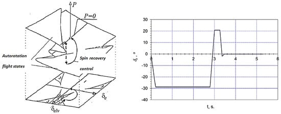 Given the experience from numerous research (based on the bifurcation analysis and continuation technique), the following, three-stage test diagram for a non-linear aircraft motion was formulated [,,,,,,,,,,,,,,,,,,,,,,,,]