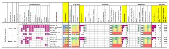 Although the authors of this paper consider the PdM analysis matrix [10] to be the most state-of-the-art risk analysis, it lacks some requirements from an Industry 4.0 perspective. First, it does not address the basic logic connecting sensor technology with the levels of detection, diagnosis, and prediction of specific failure modes by connecting failure mechanisms to failure symptoms. Second, it lacks a methodology that would enable assigning quantitative values to levels of detection, diagnosis (tracking), and prognosis (prediction) supported by qualitative descriptions.