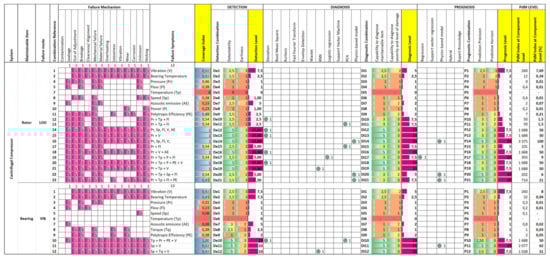 The PdM index at the component level can be estimated as the product of the coverage and levels of detection, diagnosis, and prognosis. Furthermore, underlining the most suitable condition parameters and analyses enables detection, diagnosis, and prognosis.