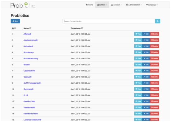 A website system was built following a Java architecture through the implementation of the MVC pattern that allows managing all the information related to probiotics, strains, pathologies, scientific evidence, etc. [29].