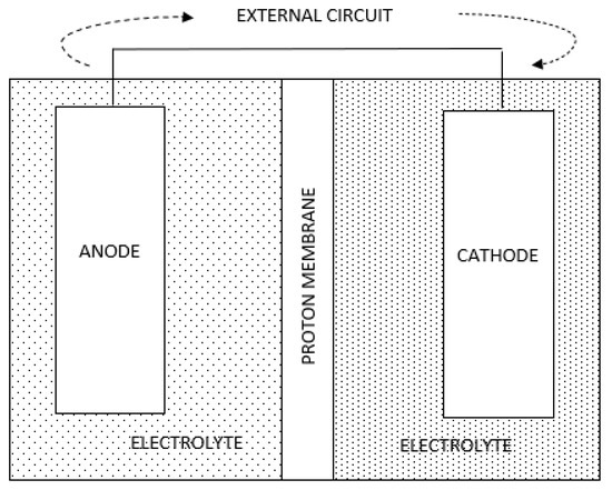 An interesting technology that has raised attention in recent years is that of fuel cells, in which hydrogen is often used as fuel. A fuel cell is an electrochemical technology capable of energy conversion. It is indeed capable to transform the chemical energy of a fuel into electricity [69]. A fuel cell may vary for it architecture, for the kind of fuel or for its catalyst; but it always consists of a few simple main parts (Figure 3): electrodes (an anode and a cathode), electrolytes, and an external circuit [70].