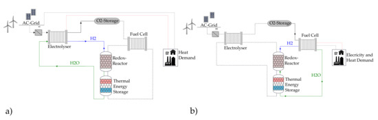 Recently, the adverse effects of climate change have become more and more obvious [1]. The reason behind this development is identified in the global energy-related greenhouse and CO2 gas emissions. Although these are periodically flattening out, they have increased by an average of 1% per year over the last ten years [2]. In order to counteract this development, constructive approaches are needed to implement a global transformation of the energy systems dominated by fossil fuels. By an intelligent combination of wind, solar, as well as bio energy with efficient energy storage along with an effective power recovery system, a decentralized “green” energy supply can be realized. Hereby, different energy sectors of industrial plants and urban residential areas can be supplied with “green” energy [3,4]. Hydrogen as an energy carrier offers ideal conditions for such a cross-sectoral “green” energy supply, since in addition to stationary energy applications, it can also contribute to the decarbonization of the transport sector [4,5]. Furthermore, hydrogen, as a clean energy carrier, has the potential to provide the much-needed flexibility to power systems, acting as a buffer to non-dispatchable renewable energy generation, and can, therefore, play a key role in seasonal balancing of renewable generation by storing large amounts of hydrogen [2].