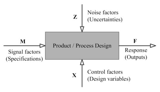Block diagram of a product/process design in Taguchi method considering control factors (design variables) and noise factors (uncertainties).