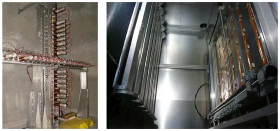 - Baussan, E.; Bouquerel, E.; Dracos, M.; Gaudiot, G.; Osswald, F.; Poussot, P.; Vassilopoulos, N.; Wurtz, J.; Zeter, V. Study of the pulse power supply unit for the four-horn system of the CERN to Fréjus neutrino super beam. J. Instrum. 2013, 8, T07006. [Google Scholar] [CrossRef]