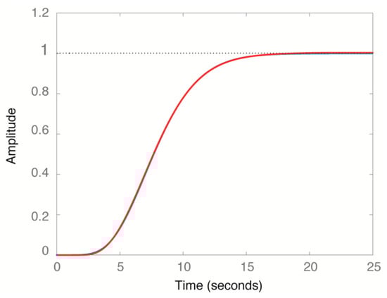 and . Supposing that the process gain is known and using the information from the DF and Equations (5) and (6) to estimate the lag and the delay of , we would obtain and . Clearly, the estimation is not very accurate. Also, if the process to estimate had been a second order model with time delay, an additional point would have been necessary by a second experiment with the relay. However, in this case also the estimation would contain similar errors.