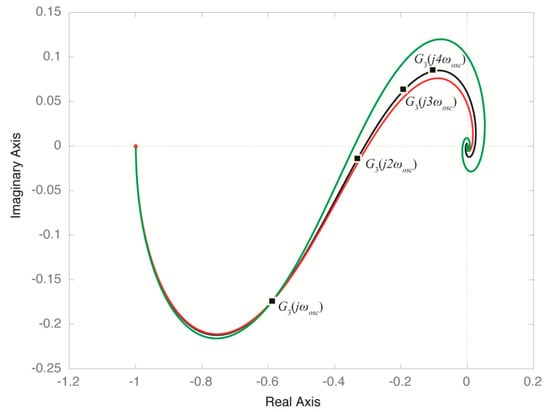 is satisfied. Notice that Equation (2) represents the intersection in the Nyquist plot of with the horizontal line −. The intersection point is termed in the literature as the critical point. In the case of a simple relay, the phase lag of is 180°.