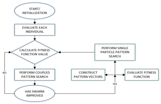 Schematics of the Hybrid Optimizer/ Particle Swarm Optimization (PSO) algorithm combined with the Pattern Search algorithm.