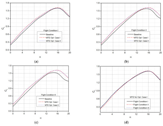 The lift coefficients of the UAS-S45 are calculated for each angle of attack using design parameters mentioned in a previous paper of our team [67]. The constraints implemented are both maximum lift coefficient and lift coefficient of baseline airfoil at each angle of attack. The optimization runs are executed with a minimum lift coefficient at each angle of attack. Constraints are applied by penalty functions to the objective function to ensure optimum performance is obtained at each given angle of attack.