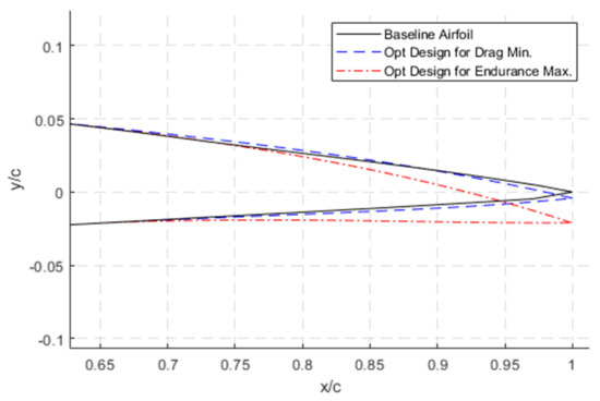 In addition, the design problem shown in this paper must consider the extended range of flight operating conditions that a UAV is expected to encounter within its flight envelope. As mentioned above, this study considers the optimization of the airfoil shape for drag minimization and for endurance maximization as individual target objective functions.