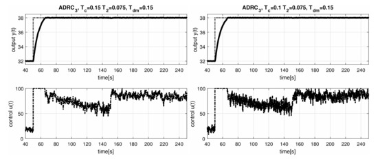 Because we are mainly interested in the question of whether it is possible to obtain faster and at the same time sufficiently smooth transients by using a higher order controller and ESO, we will focus on shorter values and .