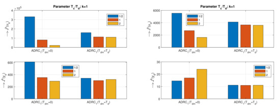 Wight of the speed of the transients expressed in terms of the IAE values will be denoted by the parameter k. Next, we will compare these four parameters for two different values and .