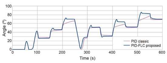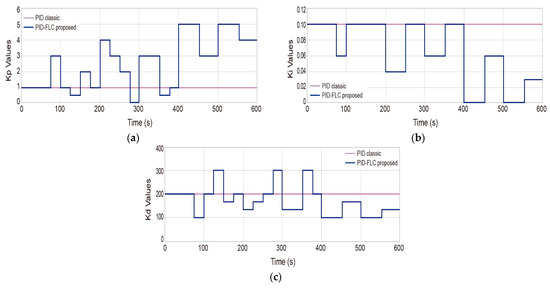 Figure 19 shows the temporal transition of the gains of the proposed FLC-PID controller along with the gains in the ideally tuned PID controller.