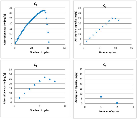 | Adsorption Column | Number of Adsorption Cycles | Total Volume Treated [L] |