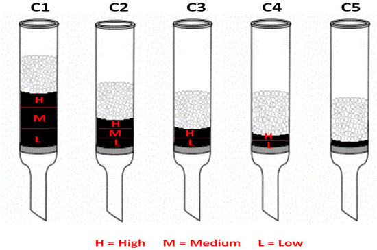 | Layer | Total Weight Loss [%] | Heigh of Total MWCNT Layer in the Column [cm] | Difference Weight Loss between High and Low Layer (%) |