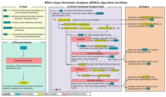 Figure 1. Schematic representation of the workflow of the ROck slope Kinematic Analysis (ROKA) algorithm.