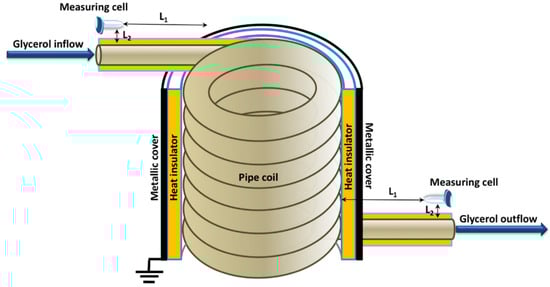 In bioreactors and bioanalytical devices, a thermal stabilization of measuring cells and/or reaction vessels is often required to provide optimal process conditions. For this purpose, biosensors and bioreactors can be equipped with flow-based systems with circulating heat transfer fluid [1], such as water, ethylene glycol, glycerol, etc. Glycerol and glycerol-containing solutions can be employed for thermal stabilization [2], since their use allows one to vary the process temperature over a broad range from −43.5 °C [3] to 17 °C [4]. Coiled construction of flow-based systems is a popular technical solution realized in bioanalytical equipment. To achieve optimal heat transfer, the reactor, cuvette, etc. is usually placed within the coil with circulating heat transfer fluid. Previously, we demonstrated that the incubation of a protein solution over the coiled pipe with flowing liquid leads to a change in adsorption properties of the protein macromolecules [5]. We discussed that the flow of a non-aqueous liquid (such as glycerol) generates an electric charge [5,6]. This charge induces an electric field, which, in turn, can affect proteins’ properties.