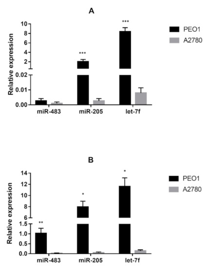 Márton É, Varga A, Soltész B, Penyige A, Lukács J, Póka R, Nagy B, Szilágyi M. Comparative Analysis of Cell-Free miR-205-5p, let-7f-5p, and miR-483-5p Expression in Ovarian Cell Cultures and Plasma Samples of Patients with Ovarian Cancer. Applied Sciences. 2021; 11(4):1735. https://doi.org/10.3390/app11041735