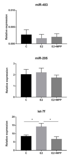 3.2. Let-7f-5p Is Upregulated in Response to Estradiol Exposure in PEO1