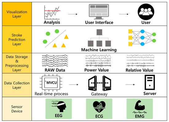 - Yu, J.; Park, S.; Kwon, S.-H.; Ho, C.M.B.; Pyo, C.-S.; Lee, H. AI-based Stroke Disease Prediction System Using Real-Time Electromyography Signals. Appl. Sci. 2020, 10, 6791. [Google Scholar] [CrossRef]