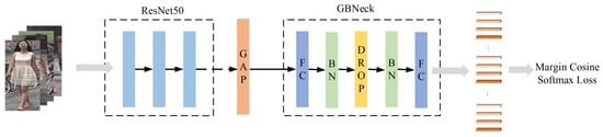 The overall framework of the proposed margin CosReid network is shown in Figure 1. First, the dataset is inputted to the basic skeleton ResNet50. After that, the proposed feature extraction model GBNeck is added for feature extraction. Finally, the pedestrian descriptor is obtained.