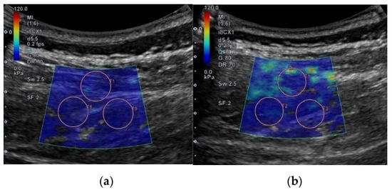 - Arda, K.; Ciledag, N.; Aktas, E.; Aribas, B.K.; Kose, K. Quantitative Assessment of Normal Soft-Tissue Elasticity Using Shear-Wave Ultrasound Elastography. Am. J. Roentgenol. 2011, 197, 532–536. [Google Scholar] [CrossRef]