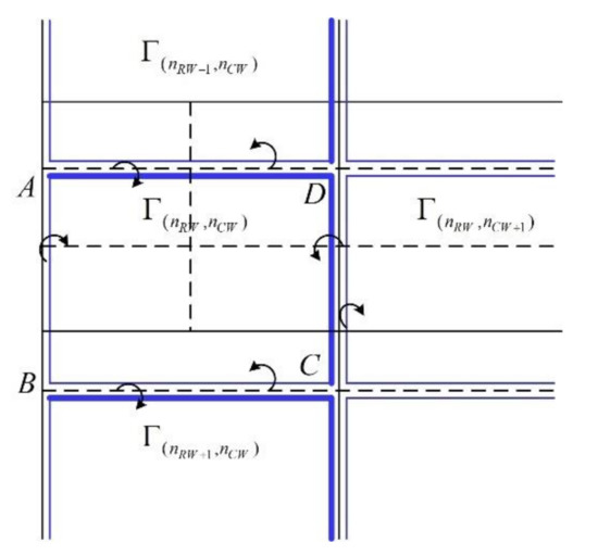 The aerodynamic force is further computed by Kutta–Joukowski lift theorem based on the circulation of each vortex ring. Taking the right half wing as an example, any vortex and its neighboring vortices are superposed on the lattice panel to obtain total circulation distribution. As shown in Figure 6, the aerodynamic force at the collocation point is:
