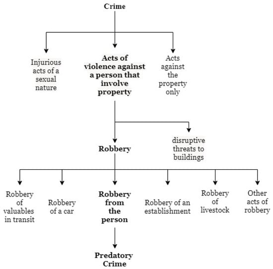 Figure 2 shows part of the crime classification presented in [45]. Due to its similarities, the crime of mugging may be considered as predatory violence.