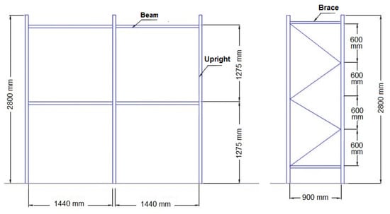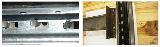 - Rack Manufacturer’s Institute. Specification for the Design, Testing and Utilization of Industrial Steel Storage Racks, ANSI MH16; Rack Manufacturer’s Institute: Charlotte, CA, USA, 2012. [Google Scholar]