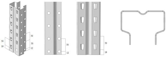 - Taheri, E.; Firouzianhaji, A.; Usefi, N.; Mehrabi, P.; Ronagh, H.; Samali, B. Investigation of a Method for Strengthening Perforated Cold-Formed Steel Profiles under Compression Loads. Appl. Sci. 2019, 9, 5085. [Google Scholar] [CrossRef]