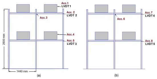 Location of Linear Variable Differential Transformers (LVDTs) and accelerometers: (a) front frame, (b) back frame.