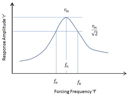 where fn is the forcing frequency at resonance and fa and fb are the calculated frequencies at a response amplitude of of the peak response amplitude [47].