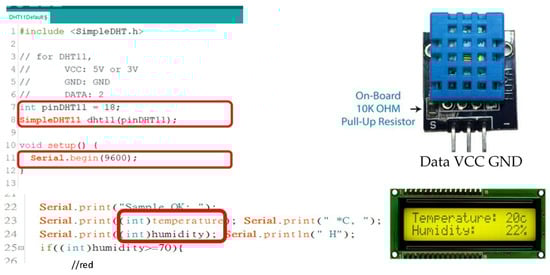 In terms of the application of Arduino programming, the students were asked to apply the function of modular parts of the Arduino temperature and humidity sensors according to functional requirements. Therefore, students set about writing the function library program and the user interface settings with sensor changes, with the aim of achieving a data transmission conversion display. Therefore, the students learned that temperature and humidity sensing is based on the scientific knowledge of analog-to-digital conversion. Through the input signals of temperature and humidity, the module performs data processing and outputting. Therefore, the sensor signal serves as the source of the element’s trigger signal.