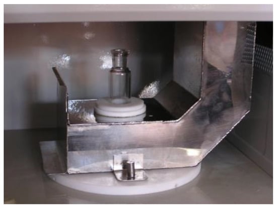 The device for generating the concentrated microwave field was the Plazmatronika RM2001 microwave reactor with a specially constructed waveguide to concentrate the microwave field in the space where the 10 cm3 test sample was placed in a glass vessel (Figure 1).