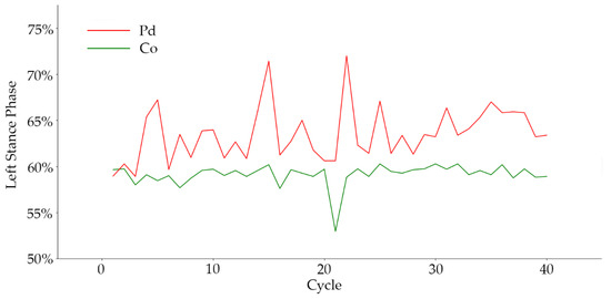The proportion of left foot support between control subjects and PD patients (one subject in each group).