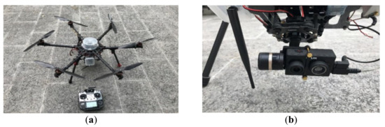 UAV system with thermal and visible light cameras: (a) UAV, (b) FLIR Thermal Camera.