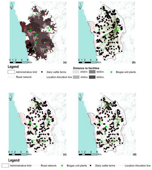 - Comber, A.; Dickie, J.; Jarvis, C.; Phillips, M.; Tansey, K. Locating bioenergy facilities using a modified GIS-based location–allocation-algorithm: Considering the spatial distribution of resource supply. Appl. Energy 2015, 154, 309–316. [Google Scholar] [CrossRef]