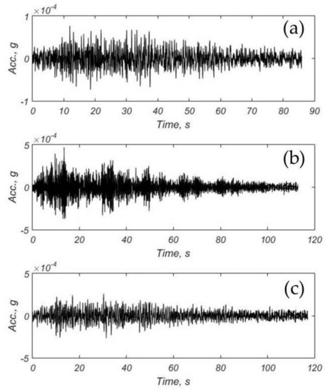 - Beresnev, I.A.; Nightingale, A.M.; Silva, W.J. Properties of Vertical Ground Motions. Bull. Seismol. Soc. Am. 2002, 92, 3152–3164. [Google Scholar] [CrossRef]