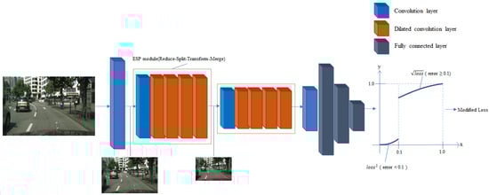 Our mIoUNet structure consists of a front part composed of the CNN, which performs feature extraction, and a back part composed of FCL for failure detection. In this paper, we propose an end-to-end network with sigmoid function at the end. Our main segmentation network is ESPNet, which is a segmentation network of a reduction-split-transform-merge structure using convolutional factorization. Similarly, mIoUNet uses the encoder part of ESPNet to extract similar feature from same structure, as illustrated in Figure 4.