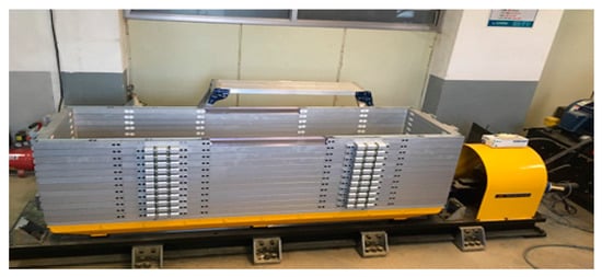 Figure 1 presents a schematic of the 1 g shaking table test system, which is mainly composed of a model, a hydraulic actuator rail, a base, a hydraulic actuator, a hydraulic pump unit, and a console. The hydraulic pump unit is an analog controller with an electro-hydraulic servo valve as the core, and its performance affects the entire system. It plays a decisive role and is the core part of the entire control system. The hydraulic actuator mainly provides power, including hydraulic pump stations, accumulator groups and cooling systems, etc. The rail of hydraulic actuator is designed according to the maximum speed value of the seismic wave. To save energy, large-capacity accumulator groups are currently installed to provide the actuators with huge instantaneous energy.