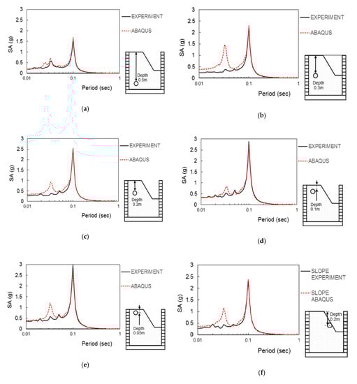 Figure 12 shows the spectral acceleration measured at depths in the 1 g shaking table test and the spectral acceleration obtained from ABAQUS.