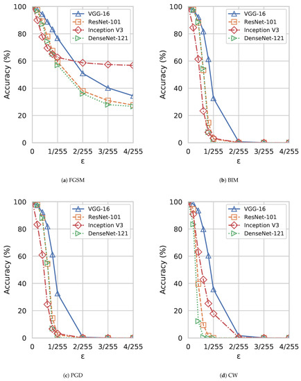 - Carlini, N.; Wagner, D. Towards Evaluating the Robustness of Neural Networks. In Proceedings of the 2017 IEEE Symposium on Security and Privacy (SP), San Jose, CA, USA, 22–26 May 2017; pp. 39–57. [Google Scholar]