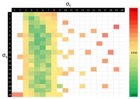 Heatmap showcasing the average error rate for different combinations of for and (lower is better).
