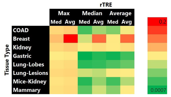 rTRE values for various tissue types for the evaluation data using the approach proposed.