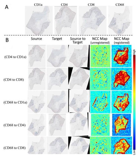 - Obando, D.F.G.; Frafjord, A.; Øynebråten, I.; Corthay, A.; Olivo-Marin, J.; Meas-Yedid, V. Multi-Staining Registration of Large Histology Images. In Proceedings of the 2017 IEEE 14th International Symposium on Biomedical Imaging (ISBI 2017), Melbourne, Australia, 18–21 April 2017; pp. 345–348. [Google Scholar]
