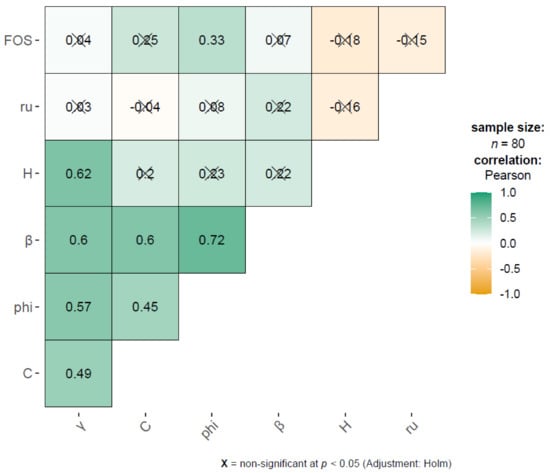 Correlation matrix (aka correlalogram) plot of slope data.