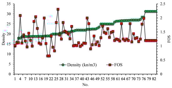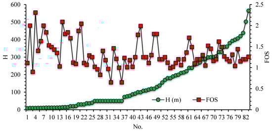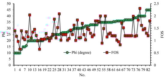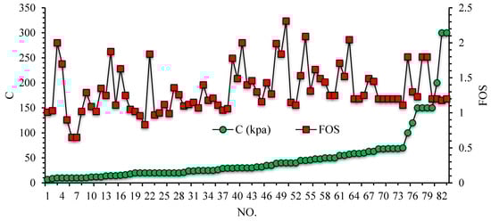 Typically, the stability of a slope is expressed by the term ‘factor of safety’ (FOS). If the FOS value is greater than one, the slope is thought to be safe. To compute the FOS value, several methods have been suggested in different studies. Two conventional types applied for this purpose are numerical methods (such as finite element method, finite difference method, and discrete element method) and limit equilibrium methods (LEMs) [,]; both have certain advantages as well as drawbacks. Finite element methods are used to analyze slope stability for two-dimensional and three-dimensional simulation. However, each method has its advantages and disadvantages. Two-dimensional methods are usually conservative and can differ by up to 30% from three-dimensional results. This creates unsafe designs for FOS projects. On the other hand, 3D models have a higher execution time, which also reduces their use [,]. In general, these traditionally used methods are complex and iterative and cause an overloaded computation system []. Such faults have obliged researchers working in this field to make attempts to propose alternative approaches to slope stability computation.